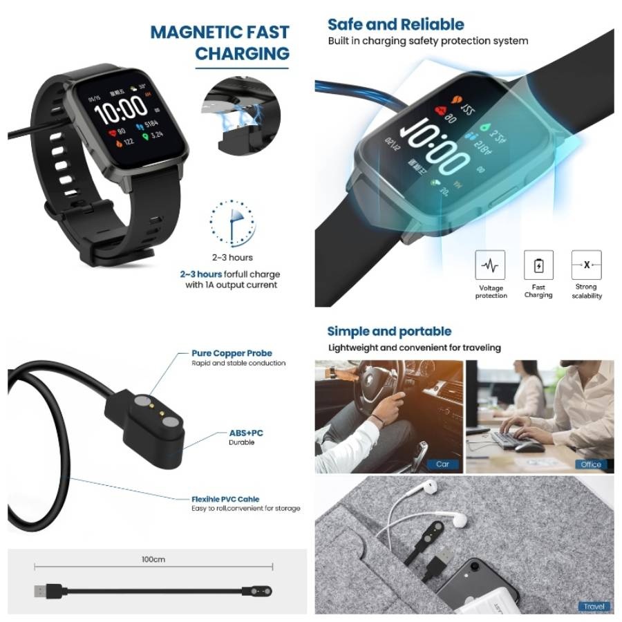 2 - Pack Compatible with EIGIIS KE5 KE3 KE2LaNikar KE5 KE3 Watch, Magnetic Charging KE5 KE3 Watch BlackBlack
