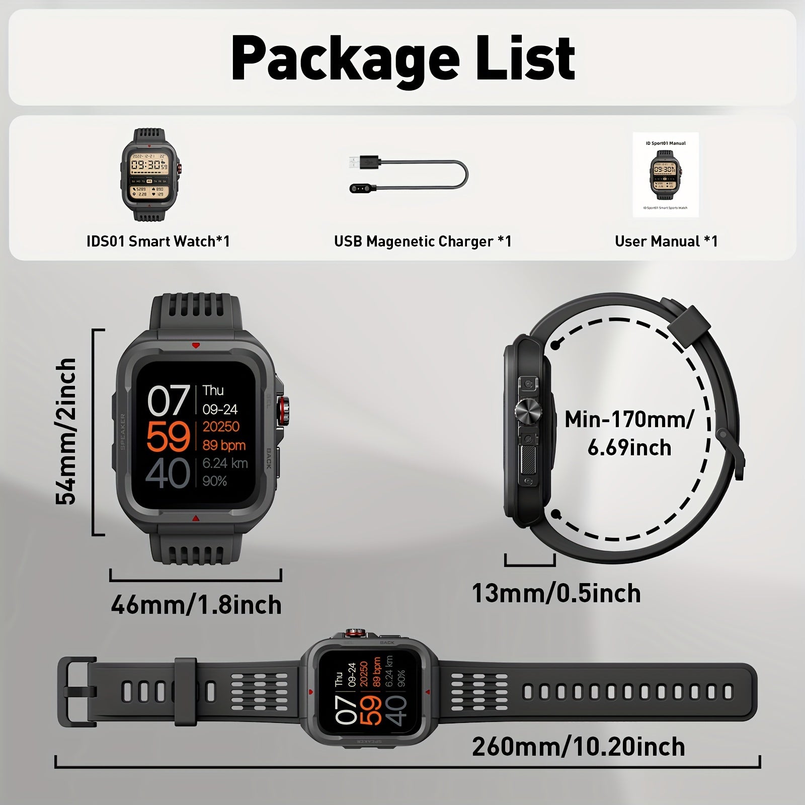 Smart Watch for Sports FAWEIO 1pc Smart Watch - 1.8 Inch Sports Smartwatch with 100+ Sports Modes, Fitness Activity Tracker Pedometer, Compatible with Android and iPhone - Perfect Gift for Family and Friends